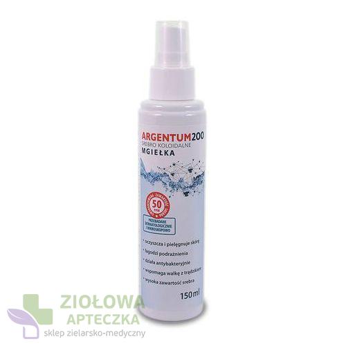 Argentum200 (50 ppm) - Srebro koloidalne - tonik w formie mgiełki z atomizerem dla każdego rodzaju cery. Sporządzony z najczystszej wody demineralizowanej. Stosowanie mgiełki zapewnia czystą i matową skórę. Zawarte w preparacie srebro odkaża, pielęgnuje, reguluje wydzielanie się serum, zapobiega wypryskom, podrażnieniom oraz zaczerwienieniom.