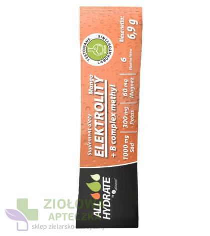 ALLHydrate Mango STICK to suplement diety w formie jednorazowej saszetki, który zapewnia szybkie i skuteczne nawodnienie organizmu. Dzięki zawartości elektrolitów oraz kompleksu witamin z grupy B wspiera pracę mięśni, układu nerwowego i metabolizmu energetycznego. Egzotyczny smak mango sprawia, że uzupełnianie minerałów i witamin staje się przyjemnym rytuałem – w domu, w pracy czy w podróży. Produkt nie zawiera cukru ani kalorii, dzięki czemu świetnie sprawdzi się również u osób na diecie ketogenicznej.