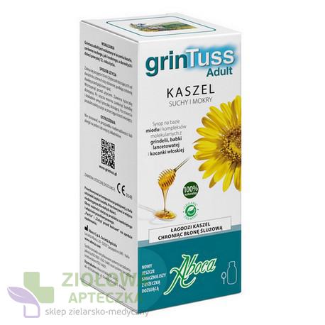 Syrop Grintuss łagodzi kaszel i chroni błonę śluzową górnych dróg oddechowych. Jest produktem na bazie miodu i kompleksów molekularnych. Działa na kaszel suchy łagodząc podrażnienie błony śluzowej i na kaszel mokry sprzyjając nawilżeniu i usuwaniu śluzu.