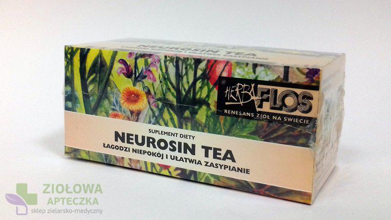 Składniki herbatki ziołowej NEUROSIN wpływają korzystnie na stabilizację nastroju i samopoczucia, łagodząc niepokój ułatwiają zasypianie, działają łagodząco w okresach wzmożonego napięcia nerwowego i stresu. Herbatka NEUROSIN pomaga przy bezsenności i w stanach pobudzenia nerwowego. Wypicie herbatki wieczorem ułatwia zasypianie. Jeśli po dniu pełnym emocji szukasz odprężenia i wyciszenia zaparz sobie ziołowa herbatkę NEUROSIN. Herbatka zawiera składniki znane od wielu lat z właściwości odprężających i relaksujących. Substancje aktywne zawarte w chmielu działają nasennie i uspokajająco. Koszyczki rumianku dzięki znajdującym się w nich związkom ( spiroeter, kumaryny i flawonoidy) wykazują działanie rozkurczające i uspokajające.