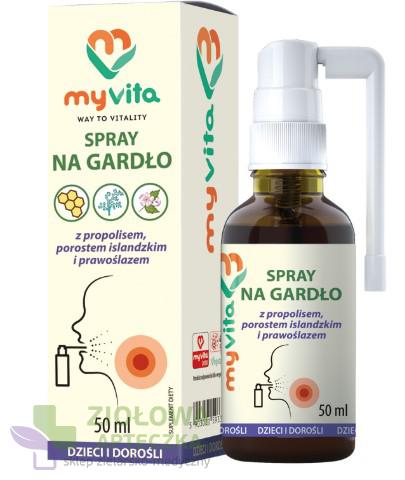 Spray na gardło wspierający działanie łagodzące i przeciwbólowe.