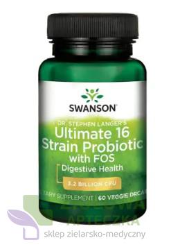 Swanson Ultimate 16 Strain Probiotic to suplement diety zawierający 16 szczepów bakterii probiotycznych oraz FOS i minerały. Wspomaga układ odpornościowy i reguluje florę bakteryjną jelit. Każda dawka zawiera ponad 3,2 miliarda bakterii probiotycznych, co zwiększa odporność i wspiera funkcjonowanie całego organizmu.